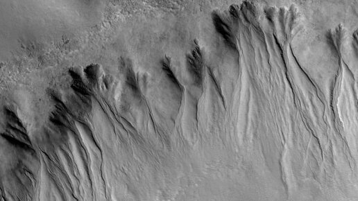 На Красной планете наблюдают многочисленные овраги, и они очень похожи на земные, промытые потоками воды. Планетологи сомневаются в том, что это результат оттаивания ледников: на Марсе для существования воды на поверхности уже давно слишком слабое давление. Овраги на Марсе — одно из самых распространенных геологических образований: их насчитываются десятки тысяч. Наблюдают овраги чаще всего в средних и высоких широтах Красной планеты, а на экваторе почти не встречают. Уже такое географическое расположение...