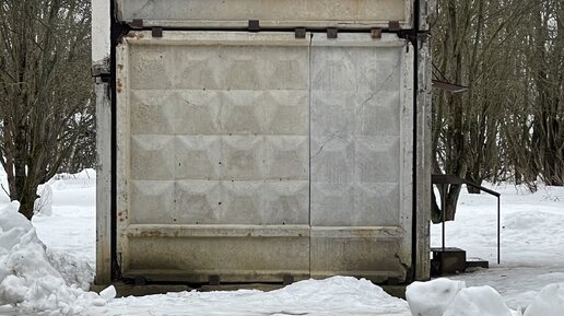 Знакомый забор? Не так ли? Этот забор есть во многих городах России и бывших странах СССР. Это железобетонный забор ПО-2, спроектированный в 1970-е годы архитектором Борисом Лахманом. Архитектор получил бронзовую модель ВДНХ за проект, но получил он ее через несколько лет, так как на тот момент он уже эмигрировал в США. Высота забора 3 метра, длина 2,5 метра, а ширина 15 сантиметров. В арт-парке Никола-Ленивец решили построить дом из этого забора. Так в плите появилось окно! Необычно выглядит не так ли? А вот так выглядит дом целиком...