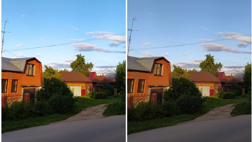 Мне всегда казалось, что этот режим просто увеличивает насыщенность и контрастность и является крайне бесполезным, но вот решил проверить. Как это вообще работает? Все достаточно просто - телефон определяет сцену из доступных (деревья, цветы, разная погода и другие) и действительно подгоняет настройки яркости, баланса белого, насыщенности и контрастности под неё. Да, для каждой сцены, разные настройки, а не одни и те же, как я ожидал. Сравнение между снимками с ИИ и без него Снималось вечером в тени...
