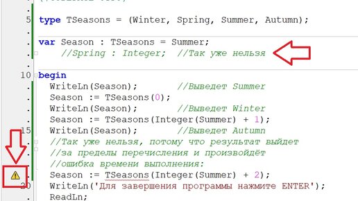 Ранее я рассказывал о пользовательских типах данных. Сегодня приведу более конкретный пример и расскажу о перечисляемых типах данных (также их называют “перечислимыми” или даже просто “перечислениями”). Речь пойдёт о Паскале, но всё это будет справедливо и для производных от Паскаля языков: Delphi, Free Pascal, Pascal Script, Lazarus и т.п. (хотя, кончено, я не могу быть уверен, что знаком со всеми реализациями Паскаля, может где-то это работает и по другому). Итак, синтаксис создания перечисления:...