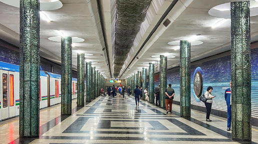Продолжим знакомство с ташкентским метро. Здесь каждая станция, как отдельный рассказ. Я покажу две, которые мне понравились больше других. Одна вспоминает о хлопковых полях, другая мечтает о полётах в космос. И обе по-своему красивы. … Одна из самых эффектных станций ташкентского метро — «Космонавтов». Уже само название обещает полёт. Потолок усыпан крошечными «звёздами», стены уходят в глубокие синие тона, а стеклянные колонны будто подсвечены изнутри. Получается ощущение пространства — и одновременно лёгкий полумрак...