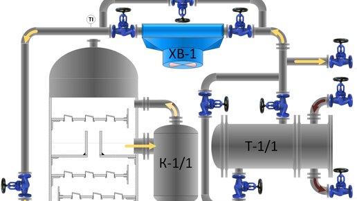 При большой высоте ректификационной колонны, в которой происходит перегонка нефти, острого орошения недостаточно для того, чтобы обеспечить нисходящий поток поток жидкости и обеспечить четкость разделения нефтяных фракций. В атмосферной колонне, рассмотренной в статье "Как работает ректификационная колонна?" , острое орошение обеспечивает не более 30% от требуемого теплосъёма по высоте аппарата. Типовым решением для ректификационных колонн с боковыми отборами нефтяных фракций существенно отличающихся по фракционному составу является организация циркуляционного орошения...