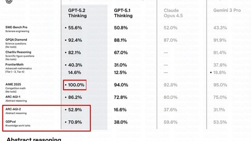 Сегодня вышла новая GPT-5.2, и это действительно очень интересно, но немного пугающе. Может показаться, что это очередная ИИ-модель, просто на пару процентов лучше, чем какая-нибудь другая нейронка, вышедшая неделю назад. Но есть здесь кое-что важное — GPT-5.2 стала самой «человеческой» нейросетью на данный момент. ● Есть бенчмарк ARC-AGI-2 — один из сложнейших тестов на абстрактное мышление. Он оценивает, насколько модель умеет сама придумывать правила, комбинировать их и рассуждать, а не просто вспоминать выученное...