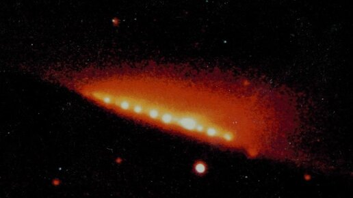 Комета Шумейкеров — Леви 9 (D/1993 F2) была обнаружена Каролиной и Юджином Шумейкер и Дэвидом Леви на фотографии, сделанной 18 марта 1993 с помощью 0,4-метрового телескопа. Она была девятой короткопериодической кометой. Характеристики кометы Шумейкеров - Леви 9 Ученые подсчитали, что первоначально комета была шириной от 1,5 до 2 км. Если бы подобный по размерам объект упал на Землю, это было бы катастрофически разрушительно. Удар мог бы поднять пыль и мусор в небо, создавая завесу, которая охлаждала бы атмосферу и поглощала солнечный свет Вся планета погрузилась бы в темноту...