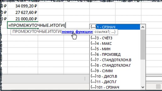 Функция ПРОМЕЖУТОЧНЫЕ.ИТОГИ в Excel