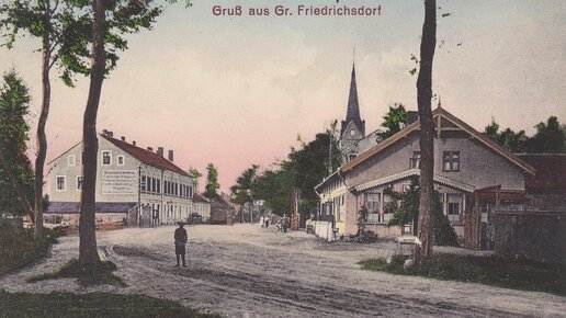 В конце XVII — начале XVIII веков посёлок Гросс Фридрихсдорф посещал русский царь Пётр I. В начале XIX века — королева Луиза. В 1938 году население Гросс Фридрихсдорфа составляло 1196 жителей. Лютеранская кирха в романском стиле с башней была построена в Гросс Фридрихсдорфе в 1902-1903 годах на месте старой деревянной, освящена 17 мая 1903 года. Начальная школа в стиле Баухаус была построена в 1930-1933 годах...