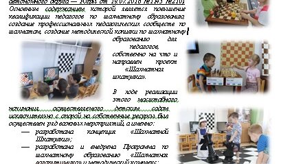 - В настоящее время в Ханты-Мансийском автономном округе-Югре реализуется дорожная карта по развитию шахматного образования в образовательных организациях Ханты-Мансийского автономного округа — Югры (приказ Департамента образования и молодежной политики Ханты-Мансийского автономного округа — Югры от 19.07.2016 №1145 №210). Основным содержанием которой является повышение квалификации педагогов по шахматному образованию, создание профессиональных педагогических сообществ по шахматам, создание методической...