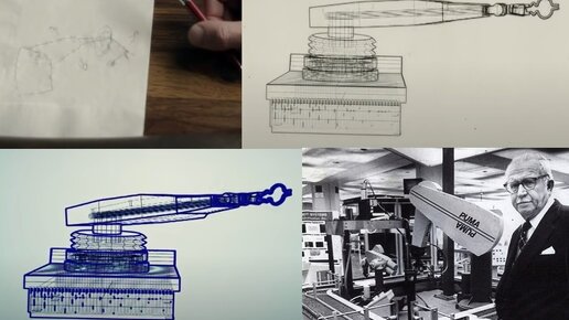 В 1959 году американский инженер Джордж Девол, отдыхая в своем гараже, листал индустриальный журнал. Его внимание привлекли иллюстрации конвейера по сборке изделий. Точнее Джорджа заинтересовал не сам конвейер, а люди, которые выполняли монотонную повторяющуюся работу. В этот момент изобретатель задумался, что было бы здорово, чтобы эту работу за человека делал какой-нибудь механизм, подобный человеческой руке. Он не откладывая нарисовал эскиз манипулятора, который внешним видом походил на руку человека и имел захват, которым можно было удерживать предметы...