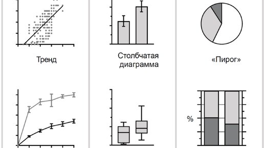Лучше всего начинать планировать научную работу с конца. А именно с графиков и диаграмм. Они наглядны и позволяют просто и быстро осмыслить основные результаты исследования. Большинство из них вы уже видели. Осталось разобраться, где и какой уместно применить. — достаточно близкие понятия и в обыденной речи нередко употребляются как синонимы. Тем более, что элементы каждого нередко можно видеть на одном изображении. График даёт представление о процессах изменения величин и обычно представляет собой линии...