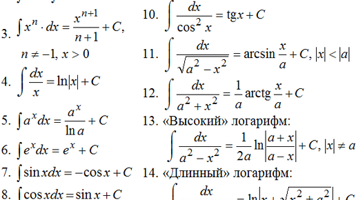 Перед изучением интегрирования необходимо хорошо научиться брать производные разных функций, это поможет быстро видеть, как можно внести под знак дифференциала.