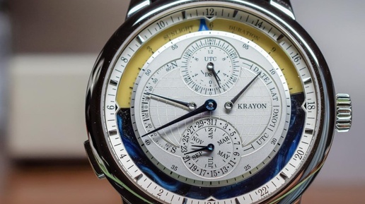 КОГДА ВРЕМЯ СТАНОВИТСЯ АСТРОНОМИЕЙ #обзор_WD В 2017 году швейцарская студия Krayon из Невшателя представила первые серийные экземпляры уникальных часов Everywhere — первых в мире механических часов, способных показывать время восхода и заката в любой точке Земли. До этого подобные модели настраивались только под одно место. Everywhere же учитывает дату, широту, долготу, UTC и уравнение времени. Всё это обеспечивает калибр USS, состоящий из 595 деталей: 85 камней, 4 дифференциала, 84 передачи и 145 колёс...