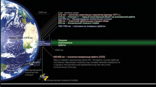 Околоземные орбиты, на которые запускаются космические аппараты, принято делить на следующие категории. Низкие околоземные орбиты (НОО) располагаются на высоте от 160 до 2000 км над поверхностью нашей планеты (в первом случае период обращения равен примерно 88 минут, во втором - 127 минут). Объекты, движущиеся на высотах менее 200 км, испытывают заметное торможение в самых высоких слоях атмосферы и достаточно быстро падают на Землю. Поэтому высоты менее 300 км для спутников обычно не применяются — время существования на столь низких орбитах сравнительно невелико...