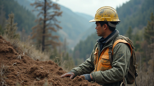 🔹 Проводит инженерно-геологические изыскания на месте будущего строительства: бурит скважины, отбирает образцы грунта и воды.