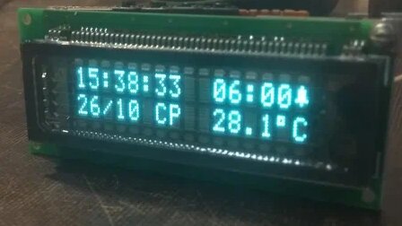 Часы-будильник основаны на микроконтроллере Atmega8, содержит часы реального времени DS3231, цифровой датчик температуры DS18B20, датчик освещенности в виде фоторезистора, зуммер для сигнала будильника, четыре кнопки управления и дисплей VDF1602. Дисплей VDF1602 (16T202DA1E) выполнен на базе вакуумно-люминесцентного индикатора, который может отображать ASCII символы в 2 строки (16 знаков в 1 строке) каждый символ в виде матрицы 5х7 пикселей. Дисплей 16T202DA1E программно полностью совместим с дисплеем LCD1602 контроллере HD44780...