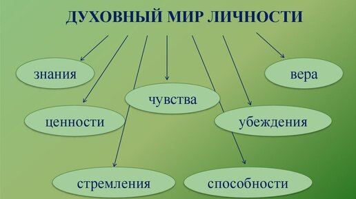 Духовный мир личности Духовность человека – высший уровень развития личности как творца своей жизни, направляющего свою активность на уровне – творение духовных потребностей. Духовные ориентиры личности: · Мораль – система норм, правил, регулирующих общение, поведение людей и обеспечение единства общественных и личных интересов. · Идеал (совершенство) – высшая цель человека, стремление, представление о высших моральных требований, о наиболее возвышенном в человеке, представление о лучшем. · Ценности – то...