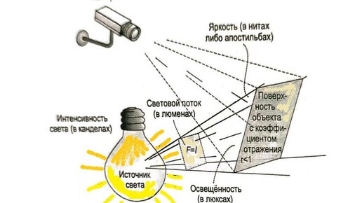 2. Яркость (прямого или отраженного) излучения. Если источник света не точечный, говорят о яркости излучения (или поверхностной яркости). Яркость измеряется в нитах(1нт=1кд/1м2).