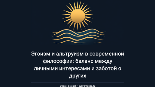 Эгоизм и альтруизм — это две противоположные концепции, которые играют важную роль в формировании моральных и этических принципов человека. В современной философии эти понятия часто рассматриваются в контексте поиска гармонии между личными интересами и заботой о других. В условиях быстро меняющегося мира, где часто сталкиваются индивидуальные и общественные ценности, важно найти баланс между этими силами. Этот текст будет полезен тем, кто интересуется философией, этикой и личностным развитием, а...