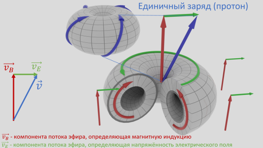 Предыдущее Обобщая всё вышеописанное, будет разумно привести наглядные иллюстрации, которые показывают, как именно происходят взаимодействия частиц, как устроен конденсатор, ток, магнит и многое другое. Начать стоит с уже упомянутого взаимодействия одиночных заряженных частиц, как тороидальных вихрей: Общую скорость потока можно разделить на тороидальную и кольцевую составляющие, которые взаимодействуют разным способом. Одна из частей ориентирует частицы, а вторая составляющая – обеспечивает притягивающее или отталкивающее действие...