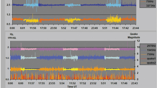 Автор: Галахов Алексей В статье приводятся экспериментальные данные импульсной компоненты естественного электромагнитного поля ОНЧ-диапазона (И.К. Э-М. П.), зарегистрированного на авроральной обсерватории ПГИ Баренцбург (78,08°, 14,2°; арх. Шпицберген), магнитограмм геомагнитного поля Земли, полученных на норвежской авроральной станции LYR TGO (78,20°, 15,82°; арх. Шпицберген), и сейсмические данные норвежской сети NORSAR. В качестве примера приведены синхронные записи двух массивов 01–10.11.2019 и 01–10...