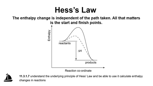Тепловой эффект химической реакции, не зависит от пути реакции, а определяется только состоянием реагентов и продуктов. Для визуального восприятия этого правила лучше всего построить энергетический цикл, показывающий два пути реакции. Оба пути будут равны по энергии. Если реакция по пути, то мы прибавляем ее значение изменения энтальпии. Если же против пути, то вычитаем. Причины использования закона Гесса заключаются в том, что изменение энтальпии многих реакций по тем или иным причинам напрямую измерить невозможно...