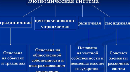 Экономическая система — это способ организации хозяйственной жизни в стране, упорядоченная система связей между производителями и потребителями материальных благ и услуг. Сейчас разберём подробнее типы существующих экономических систем. Согласно К. Р. Макконнеллу и С. Л. Брю, существует пять фундаментальных вопросов , которые определяют каждую экономическую систему: Основным фактором экономической системы являются экономические институты. Их становление, развитие и изменение напрямую влияет на тип экономической системы...