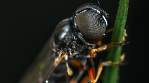 Органы чувств у животных У насекомых, например у мухи-цеце, каждый глаз на самом деле является скоплением многих отдельных глазков, так называемых омматидий. Такой глаз называется фасеточным. Каждый глазок в отдельности воспринимает свет, передавая в мозг свою собственную маленькую картинку. В мозгу отдельные картинки складываются вместе, как кусочки мозаики, и дают общее изображение. Веки отсутствуют. Вместо них между отдельными глазками растут крошечные волоски (слева), чтобы стряхивать с глаза пылинки...