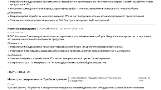 Образец резюме инженера-конструктора приборостроения 2025: пошаговое руководство