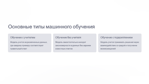 Машинное обучение часто воспринимают как что-то сложное и «только для специалистов». Но если убрать шум, остаётся очень простая структура: разные задачи требуют разных подходов. И прежде чем запускать модель, важно понять, что именно вы хотите от неё получить. Это похоже на разговор с умной системой: чем точнее вы формулируете задачу, тем точнее она работает. 🤝 Основные типы машинного обучения Обучение с учителем: когда модель учится по примерам Самый интуитивно понятный тип машинного обучения — это обучение с учителем...