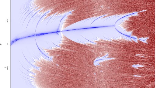 Это продолжение серии статей, посвящёной динамическому хаосу в достаточно простой механической системе: шарике, прыгающем на подпружиненном столике. Мы рассмотрели два механизма приводящих к появлению странных аттракторов: разрушение гетеро- и гомоклинических орбит, а также каскад бифуркаций удвоения периода. Кроме того, мы научились пользоваться показателями Ляпунова для характеризации хаотических орбит. Наша система очень простая (поэтому я её и выбрал в качестве примера), для полного описания всей её динамики достаточно всего двух параметров: энергии системы E и начальной точки орбиты...