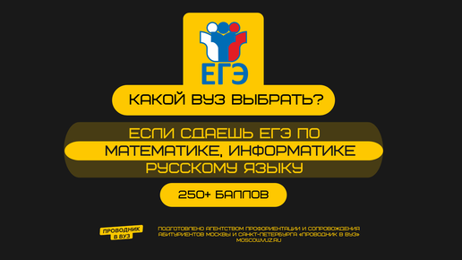 Рассказываем какие вузы и специальности выбрать. Стоимость обучения, проходные баллы, количество мест. В продолжении серии статей, где мы рассматривали комбинацию: русский язык + математика + информатика с диапазоном баллов до 200 и 201-250, рассмотрим последний диапазон баллов - 250+. Вузы, где математика и информатика являются фиксированными предметами: ВШЭ: