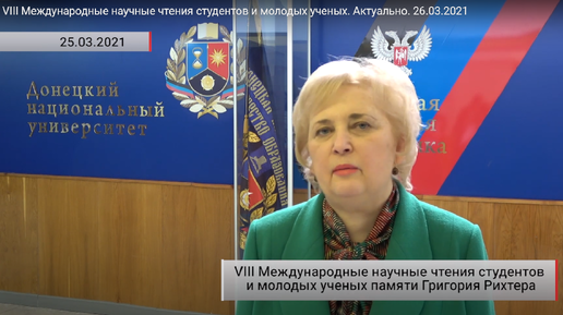О VIII Международных научных чтениях студентов и молодых ученых памяти Г. И. Рихтера «Новые горизонты русистики» в видеосюжете Первого республиканского телеканала (ДНР).