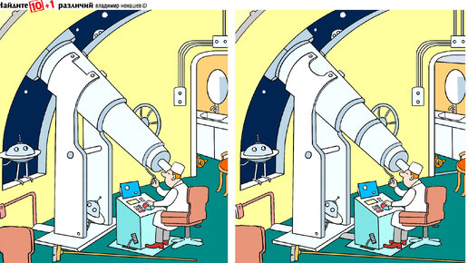 10+1 различие с телескопом. Звезды близко. В обсерватории. Тест на внимание.