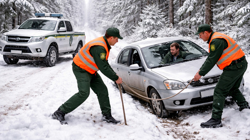В Волоколамском муниципальном округе завершилась патрульная смена сотрудников лесной охраны необычным спасением. Возвращаясь с объезда территории, работники Волоколамского филиала ГАУ МО «Мособллес» заметили у деревни Сляднево легковой автомобиль, съехавший в придорожный кювет. Ситуация осложнялась погодными условиями: прошедшие ранее обильные снегопады сделали даже расчищенные участки дорог коварными для водителей. Местный житель, управлявший машиной, принял решение остановиться на обочине, однако при попытке тронуться обратно столкнулся с непредвиденными трудностями...