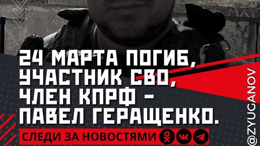 Защищая Русский мир от неонацистов, погиб коммунист Павел Геращенко 24 марта в ходе выполнения задачи по защите Родины в бою против превосходящих сил противника героически погиб член КПРФ П.Геращенко. Павел – житель поселка Черноморское (Крым). Он отправился на фронт защищать Отечество добровольцем. Перед уходом на фронт Павел написал заявление о вступлении в КПРФ. На вопрос, почему он вступил в КПРФ, Павел ответил: «Потому же, почему и солдатом стал - хочу хотя бы попытаться сделать этот мир лучше»...