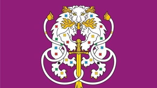 ГЕРАЛЬДИЧЕСКОЕ ОПИСАНИЕ (блазон): В пурпурном поле – две серебряные сообращённо восстающие пантеры (в виде барсов с гривами), имеющие общую голову настороже и двойные хвосты, причём одно из хвостовых ответвлений у них также общее и вьётся внизу в виде петли; глаза, язык, кисти хвостов, когти и пламя из пасти и ушей пантер – золотые; [кроме головы и общей части хвоста] пантеры обременены без числа малыми вырубными косвенными крестами – всех финифтей и золотыми;...