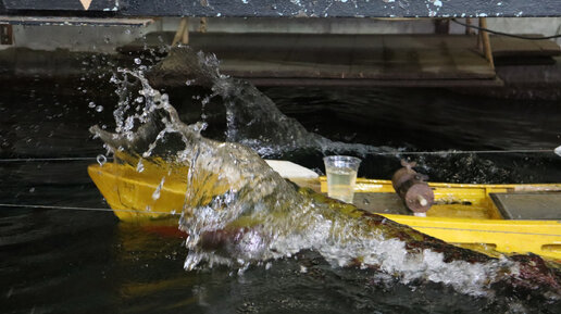 Эксперимент с качкой провели в опытовом бассейне Корабелки. Результаты смотрите в репортаже 1 канала передачи «Доброе утро». В ходе эксперимента предстояло выяснить, в каких точках возникает наибольшая качка. Измерения проходили для точки на носу, корме, мидель-шпангоуте и на борту судна. Для эксперимента использовали стаканы, наполненные водой...