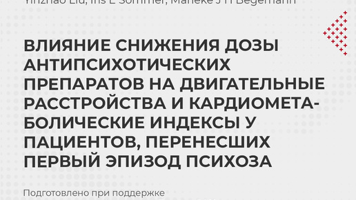 Издание Schizophrenia Bulletin опубликовало результаты исследования, проливающего свет на последствия снижения дозы антипсихотических препаратов у пациентов, восстановившихся после первого эпизода психоза. В течение среднего периода наблюдения в 29 месяцев снижение дозы на 1 мг в оланзапиновом эквиваленте от исходного уровня было связано с уменьшением паркинсонизма, потенциальным уменьшением риска поздней дискинезии и снижением ИМТ, окружности талии, общего холестерина, липопротеинов низкой плотности, липопротеинов невысокой плотности...