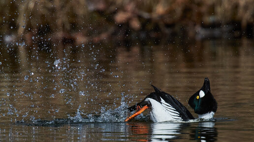 Сейчас у этих птиц как и у многих других брачный период. Самцы во всей красе демонстрируют себя и свои умения перед самками. Гоголи крякают задирая голову назад почти касаясь спины или поднимают одну из лап ложась почти на бок. Танцем это конечно сложно назвать, но самки в восторге. Когда самка восхищена партнером и готова к спариванию она ложиться на воду вытягиваясь вдоль поверхности воды.🦆