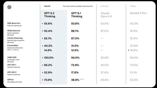 В декабре 2025 года OpenAI выпустила GPT-5.2 — модель, которая сразу вызвала бурю обсуждений. Официальные тесты показали, что GPT-5.2 значительно превосходит Gemini 3 Pro по большинству показателей, особенно в задачах с экономической ценностью: создании таблиц, презентаций, программировании, анализе длинных документов. В некоторых бенчмарках (например, GDPval) модель догоняет или даже превосходит профессионалов 70% времени. Реальные впечатления: “сразу поумнела — и тут же поглупела?” Сразу после...