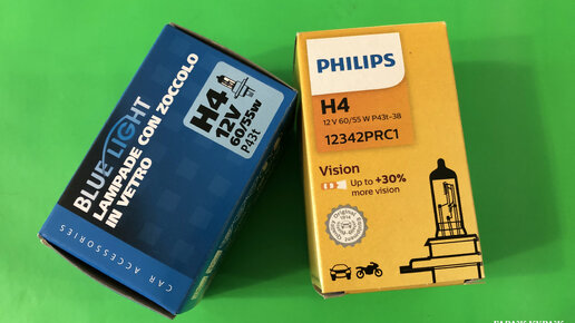 Какая лампа H4 ярче: Philips Vision +30% или Blue Light