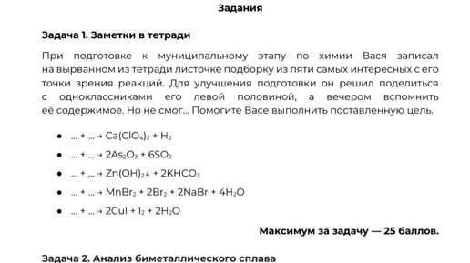 Точные варианты и ответы Всероссийская олимпиада школьников (ВсОШ) Химия 9 класс 05 регион Республика Дагестан 16 ноября 2024гг