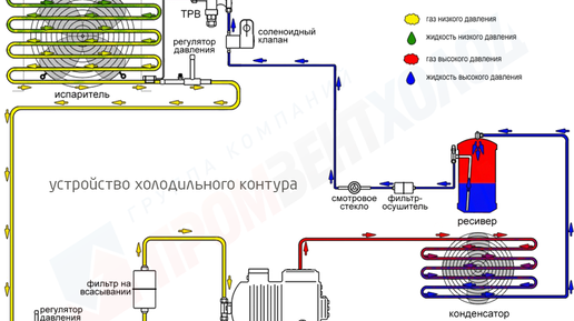 Охлаждение различных объектов – продуктов питания, воды, других жидкостей, воздуха, технических газов и др. до температур ниже температуры окружающей среды происходит с помощью холодильных машин различных типов. Холодильная машина по большому счету не производит холод, она является лишь своеобразным насосом, который переносит теплоту от менее нагретых тел к более нагретым. Основан же процесс охлаждения на постоянном повторении т.н. обратного термодинамического или другими словами холодильного цикла...