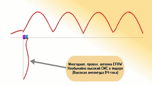 Геометрия антенны EFHW в сравнении с диполем с центральным питанием 🔹 Одна из самых серьёзных технических проблем, связанных с антенной EFHW, заключается в её крайне несбалансированном импедансе точки питания, что приводит к неоптимальному поведению коаксиального кабеля, идущего к радиостанции. Кроме того, при установке многих проволочных антенн EFHW идут на компромисс - используя оплётку коаксиального кабеля в качестве противовеса...