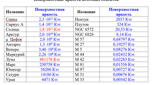 ЛЮБИТЕЛЮ АСТРОНОМИИ: ПОВЕРХНОСТНЫЕ ЯРКОСТИ НЕБЕСНЫХ ОБЪЕКТОВ