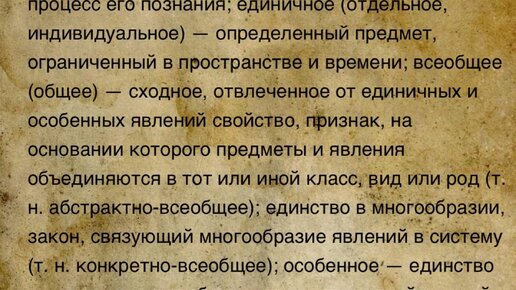 ЕДИНИЧНОЕ, ОСОБЕННОЕ И ВСЕОБЩЕЕ — категории материалистической диалектики, отражающие связь, взаимозависимость и взаимопереходы явлений объективного мира. Для идеалистов и метафизиков решение проблемы единичного и всеобщего было всегда камнем преткновения. Они не видят, не понимают диалектического единства и противоположности единичного и всеобщего, их связи и взаимозависимости. Они идеалисты (субъективные) отрицают всеобщее, превращая единичные явления в комплексы чувственных восприятий. Другие...
