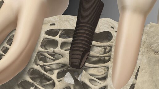 Остеоинтеграция — это установка контакта между поверхностью конструкции и челюстной костью. Для успешной интеграции требуется: Прочное удержание импланта в кости обеспечивается микроскопической поверхностью. Когда клетки костной ткани взаимодействуют с неровной поверхностью конструкции, изготовленной из титана, происходит формирование геометрической костной структуры вокруг нее. Этим и обуславливается стабильность искусственного корня. Размещение импланта в челюсти сопровождается дистантным и контактным остеогенезом...