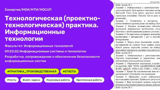 Технологическая (проектно-технологическая) практика. Информационные технологии Синергия/МОИ/МТИ/МОСАП