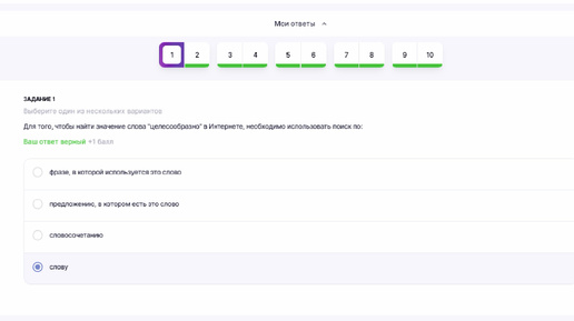 Для того, чтобы найти значение слова "целесообразно" в Интернете, необходимо использовать поиск по: Для того, чтобы найти стихотворение в Интернете, зная его часть, наиболее оптимальным способом является поиск по: Для того, чтобы найти информацию в Интернете о перелётных птицах Поволжья, следует задать поисковый запрос: Для того, чтобы найти информацию в Интернете о цветущих кустарниках Урала, следует ввести поисковый запрос: Наибольшее количество документов будет найдено по поисковому запросу: Наибольшее...