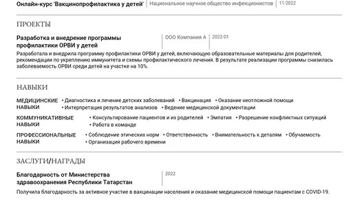 Пример резюме врача-педиатра участкового 2025 - Готовый пример