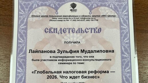 Накануне доцент кафедры «Бухгалтерский учет» Лайпанова Зульфия Мудалиповна приняла участие в информационно-консультационном семинаре по теме «Глобальная налоговая реформа-2026. Что ждет бизнес». Мероприятие проходило в г. Москва и стало отличной возможностью быть в курсе последних изменений в налоговой сфере. Повышение квалификации преподавателей вузов — неотъемлемая часть непрерывного профессионального развития. Такие курсы позволяют обновлять теоретические знания и совершенствовать практические навыки, осваивая современные методы решения профессиональных задач...